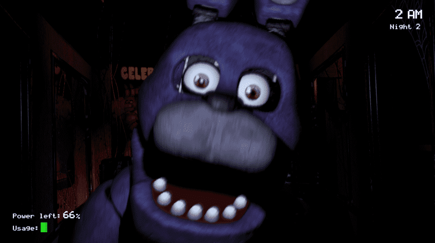 Launched in 2014, Five Nights at Freddy's is a survival horror video game developed by Clickteam USA LLC. The story begins in a fictional family shop called the Freddy’s, and you will play the night shift guard for the shop. Your aim is to survive the night until 6 am in the morning when your shift is done. You will be staying in an office alone with access to a few security cameras, using which you are able to see the movement of your enemies. Your enemies are the four animatronic characters that inhabit the facility with the main character being Freddy Fazbear. The game will restart if you are jump-scared by any of the four characters, while the game will end if you are jump-scared by Freddy. By using those camera feeds, you are able to track the movements of each character but the camera view is vague so you cannot see places too far away clearly and there are blind zones that the camera cannot cover. For blind zones, you will have to use your lights to discover. Characters can only move when off-screen so you will have to keep switching cameras to kind of trap them. All the machines mentioned above require electrical power, which is limited for players. Once electrical power is completed consumed, cameras and lights will not function anymore, and the environment will become dark. You should never leave the office and always keep the door closed for self-defense. However, when power is exhausted, the door will open automatically.