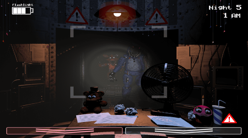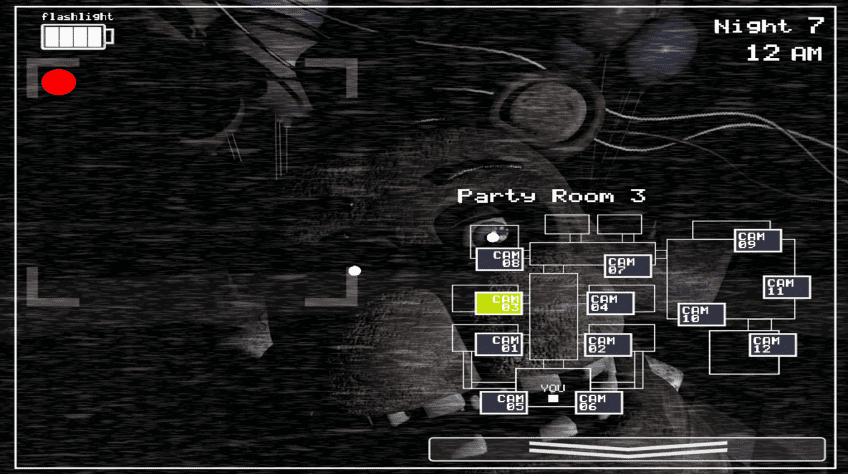 Players are stuck in the office and cannot leave the room, and the pizza shop has no lockable doors. Animatronics can move freely at any time. To get through these nights smoothly, players will have a flashlight. A wearable Freddy Fazbear helmet that fools animatronics. Also, the music box can be used to distract the animatronics.
