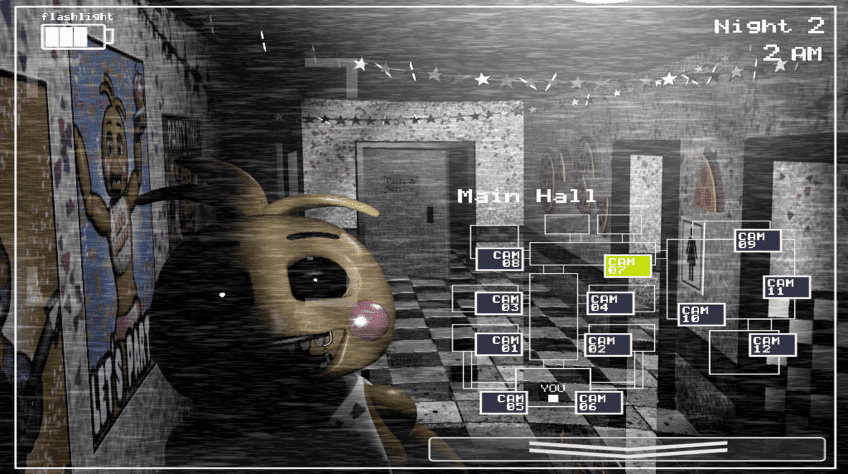 There are several strategies that you can leverage to play the game more efficiently. One of the new features of this second installment of the series is that you can quickly equip the Freddy Head to avoid death from some of the certain characters (not to all). Be careful when you hear strange and loud banging as this usually means the enemy is either inside one of the vents or is approaching the office. There is a music box, which will keep playing until 2 am when the phone guy cuts it off with by announcement. So be alert when this happens as certain characters will start to move to your office. Leverage your flashlight to lock the characters before its power is running off.